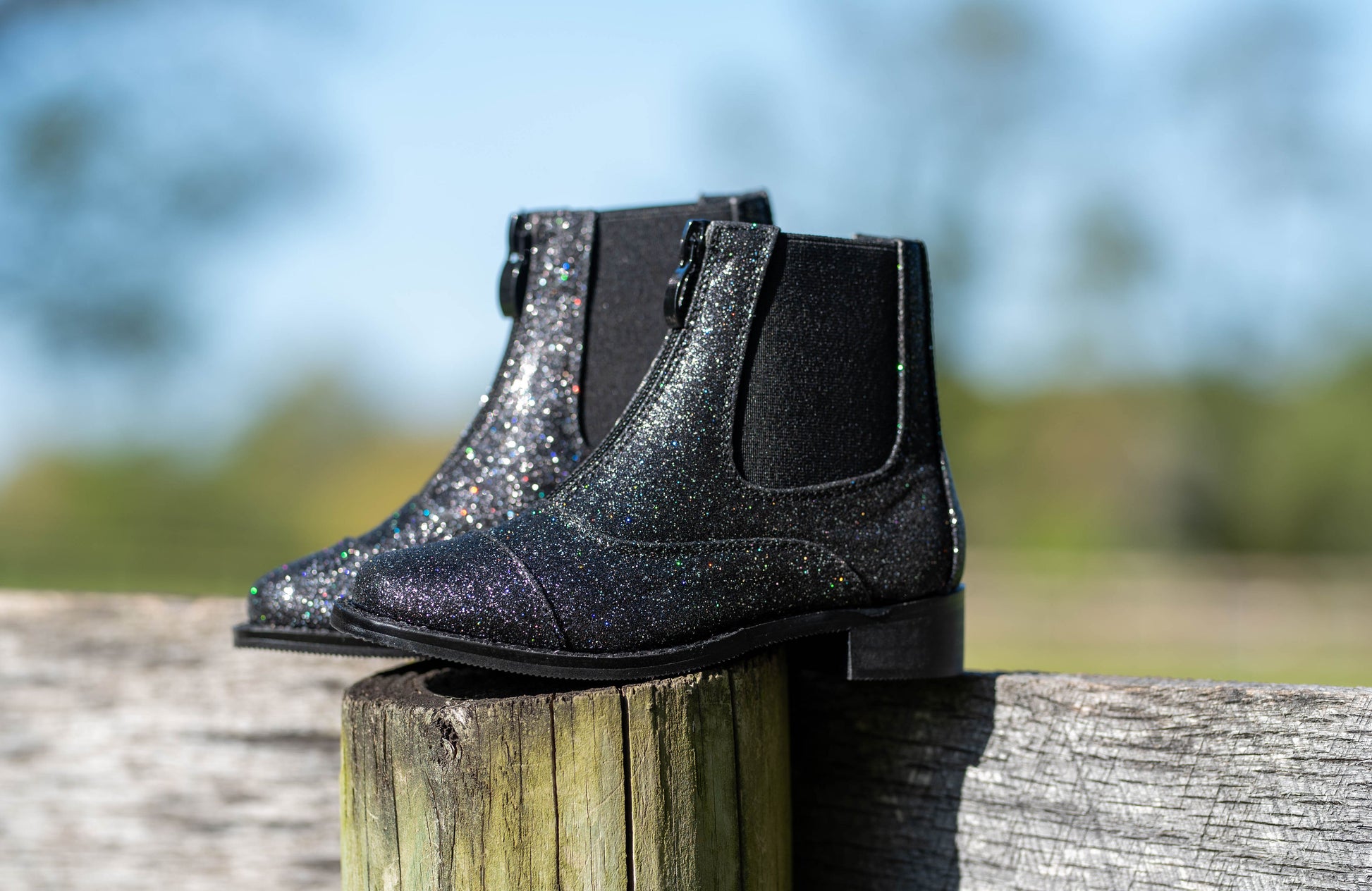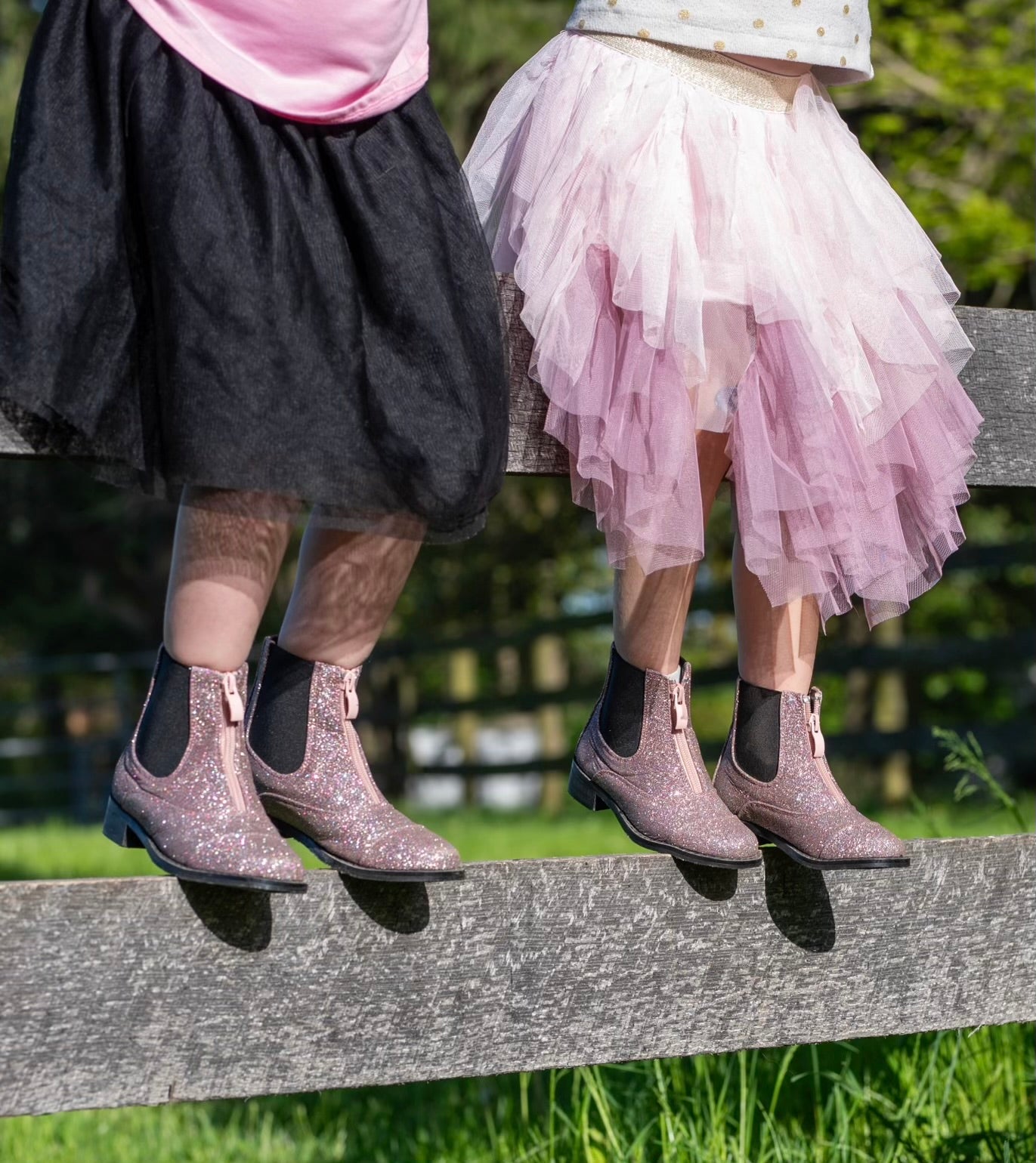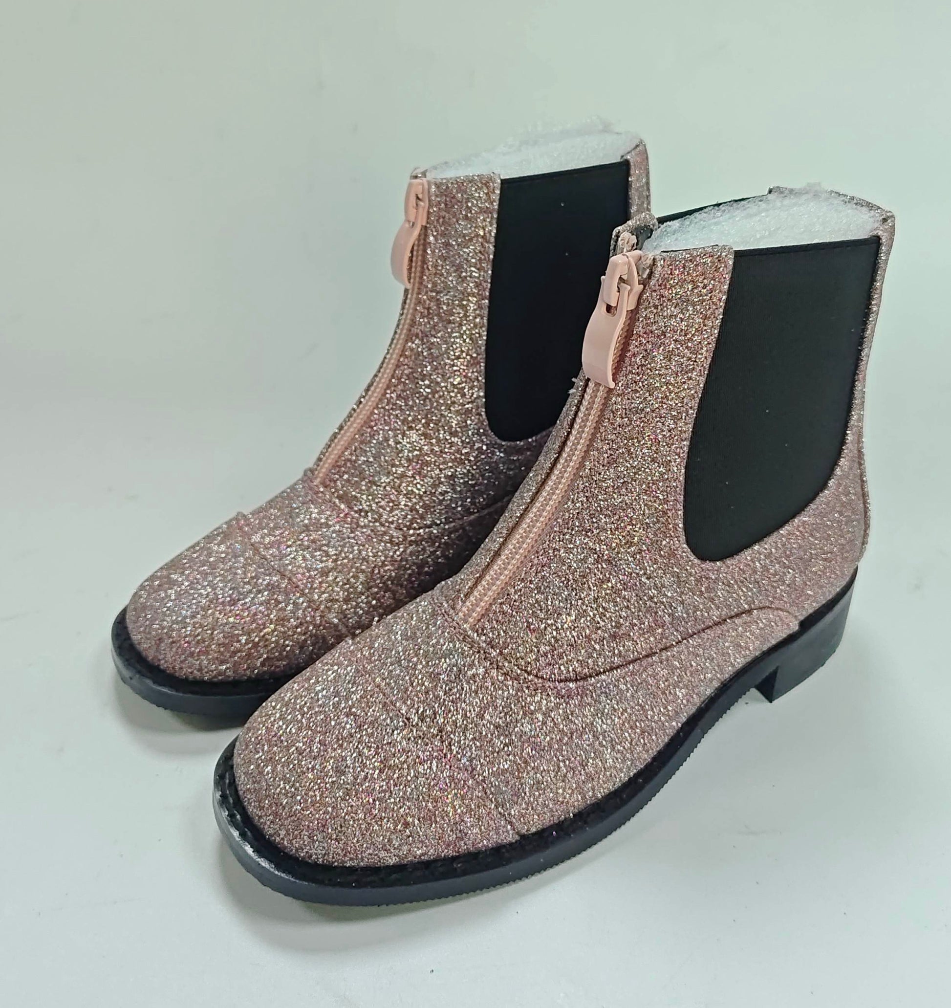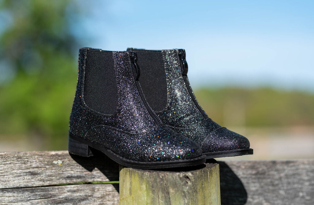 Step into a world of magic with our sparkly riding boots! These boots are not just for riding. they're for shining! With a sprinkle of stardust and zip-up design that's easy as 1-2-3, your little equestrian can gallop into their fairy-tale adventures. Perfect for the arena or the trail. These boots offer sparkle, safety, and all day comfort. Let your child's inner unicorn shine bright!