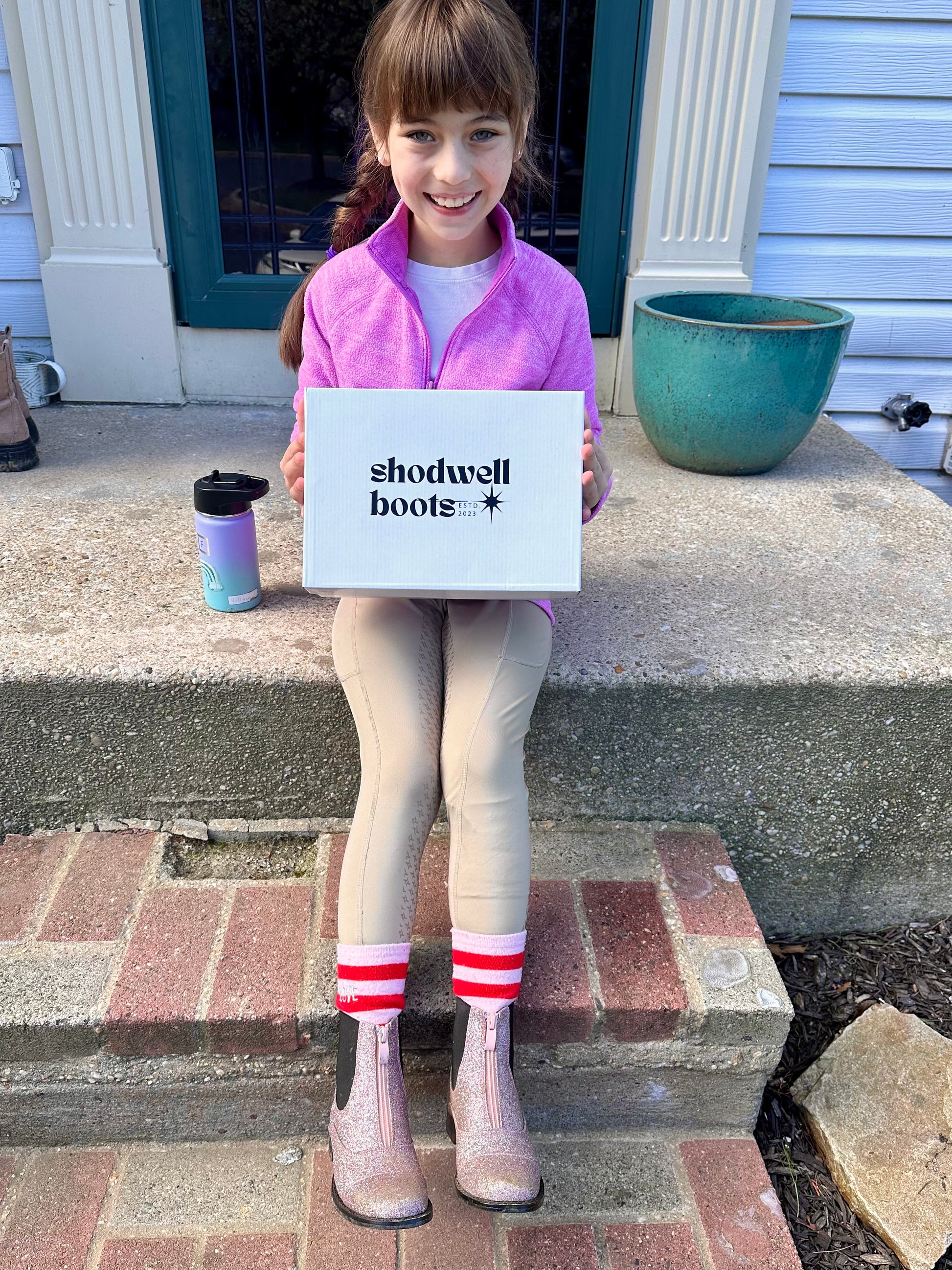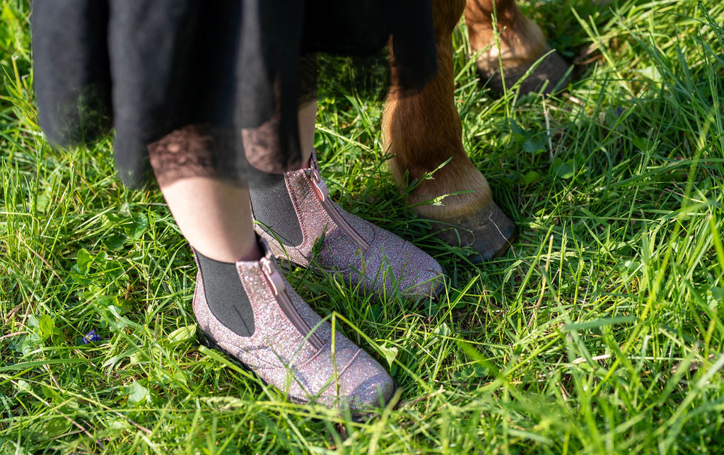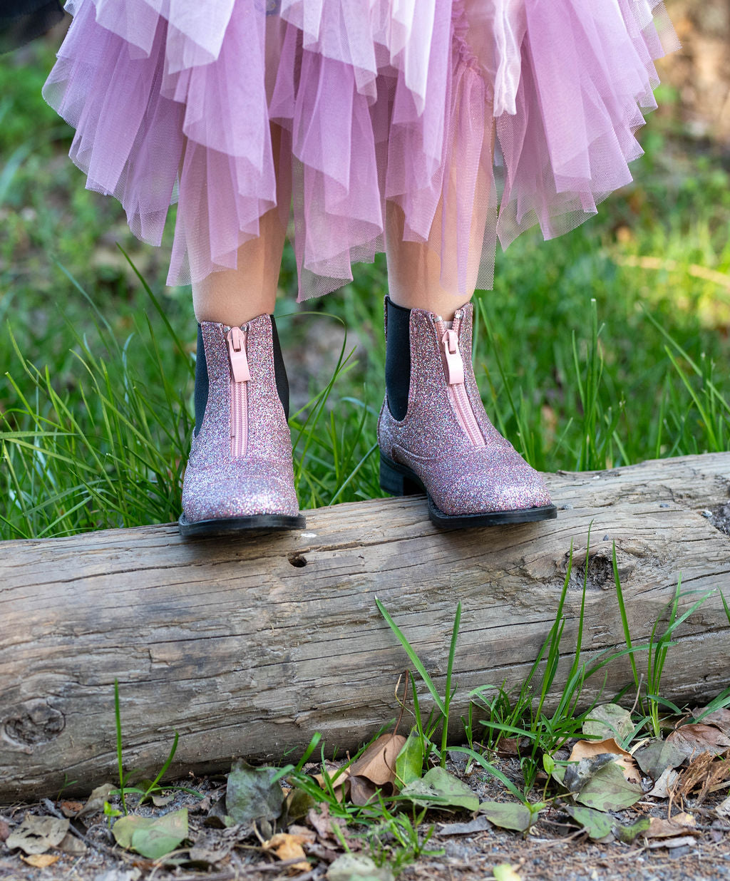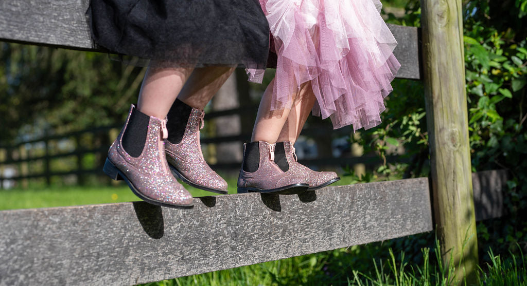 Step into a world of magic with our sparkly riding boots! These boots are not just for riding. they're for shining! With a sprinkle of stardust and zip-up design that's easy as 1-2-3, your little equestrian can gallop into their fairy-tale adventures. Perfect for the arena or the trail. These boots offer sparkle, safety, and all day comfort. Let your child's inner unicorn shine bright!